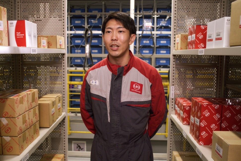 工場で必要な部品や、お客様に提供する部品の準備をする業務を行っています。 部品業務はお客様の稼働を止めない重要な業務なので、出庫表を見て抜け漏れや間違いがないか確認しています。数万点ある部品の中で、必要な種類や数を確実にお客様のところに届ける準備をすることに、大きな責任と誇りを感じます。