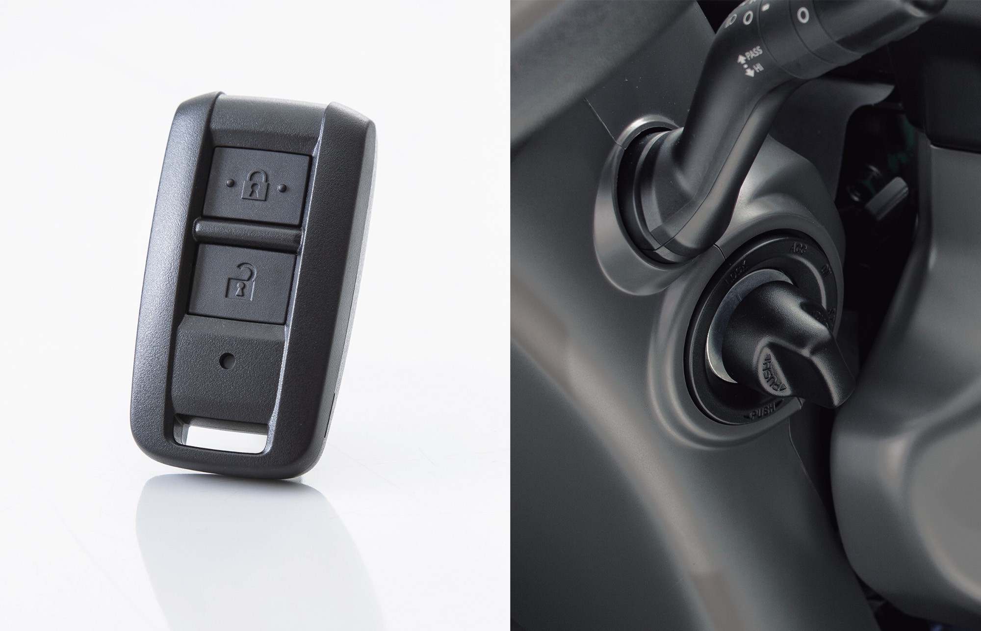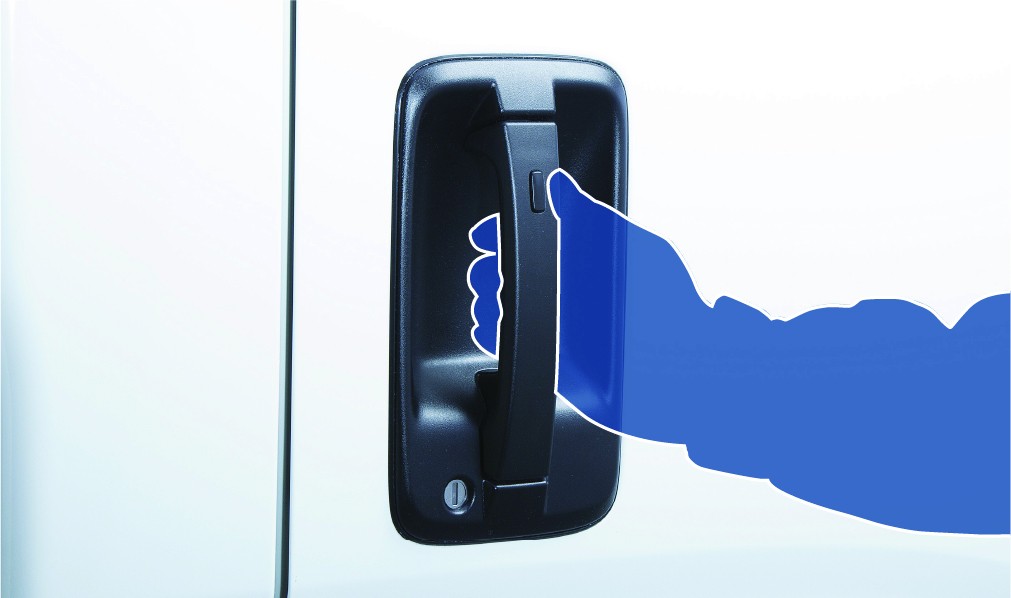 リモコンをポケット等に入れたままドアのボタンに触れるだけで、ドアの施錠・解錠が可能。エンジン始動もスイッチを回すだけで可能です。乗降の多い運行で効果を発揮します。