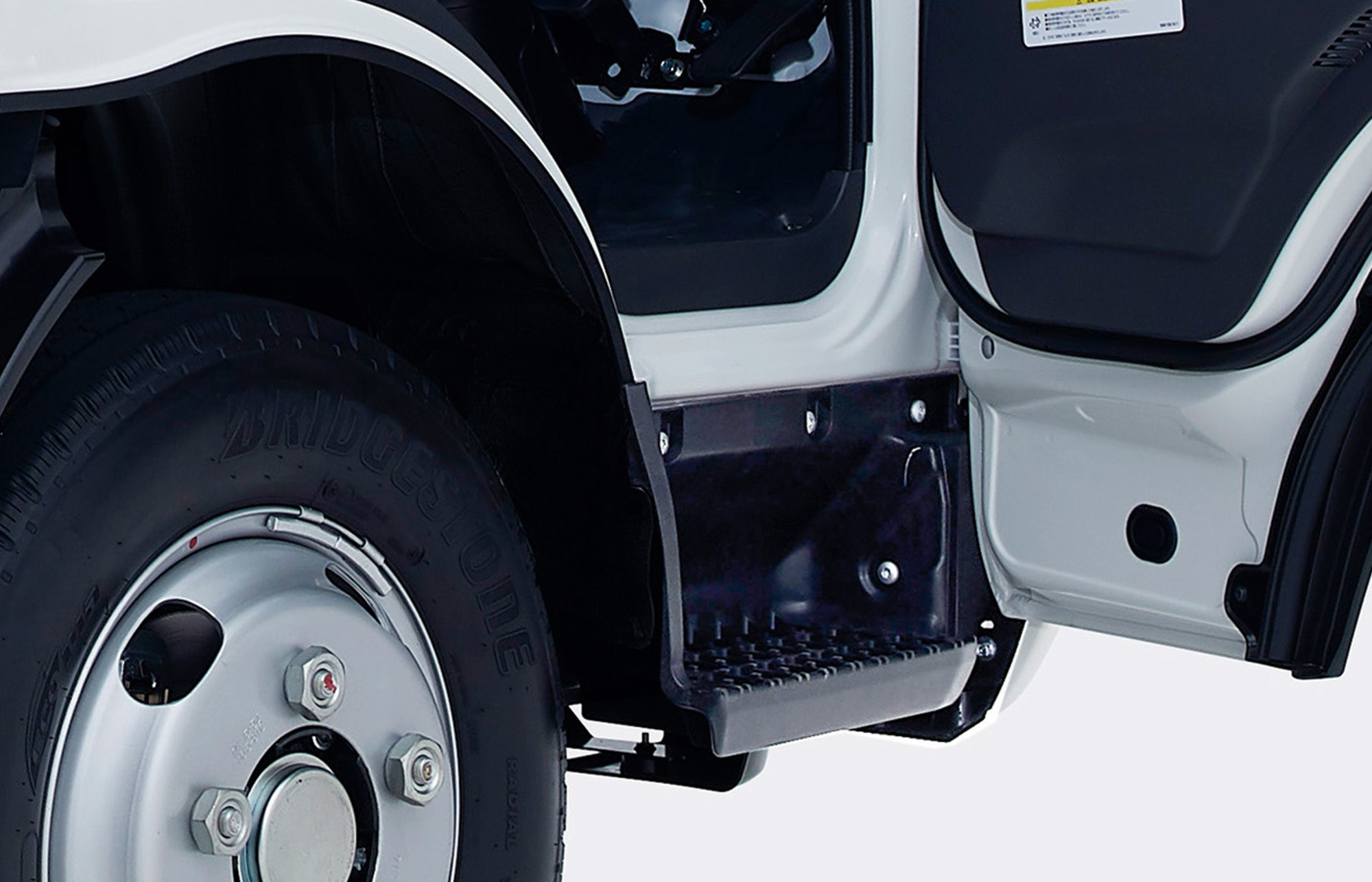 ドア半開時の乗降性に配慮し、ステップの位置を後方化。ステップ形状も、ドア半開時でも足のせしやすい形状に変更しています。