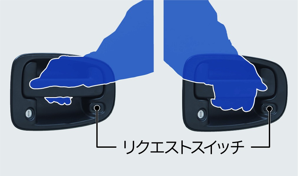 上下2方向からアクセスでき、操作しやすい形状です。キーレスライドのリクエストスイッチにも対応しています。