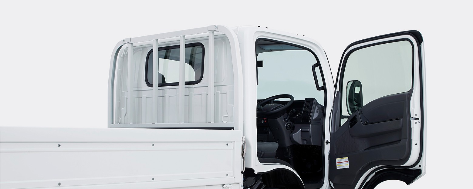 標準キャブからハイキャブ・ワイドキャブまで、Aピラーが立ったボクシーなキャブ骨格により