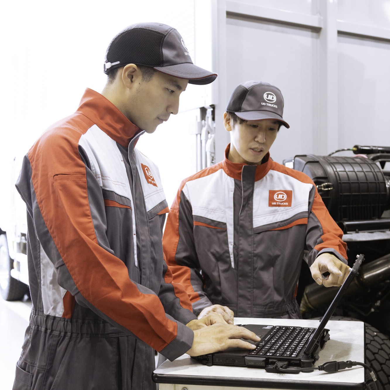 UDトラックスは、お客様に常に安心してご利用いただけるよう、サービススタッフの技術と知識の向上に日々取り組んでいます。